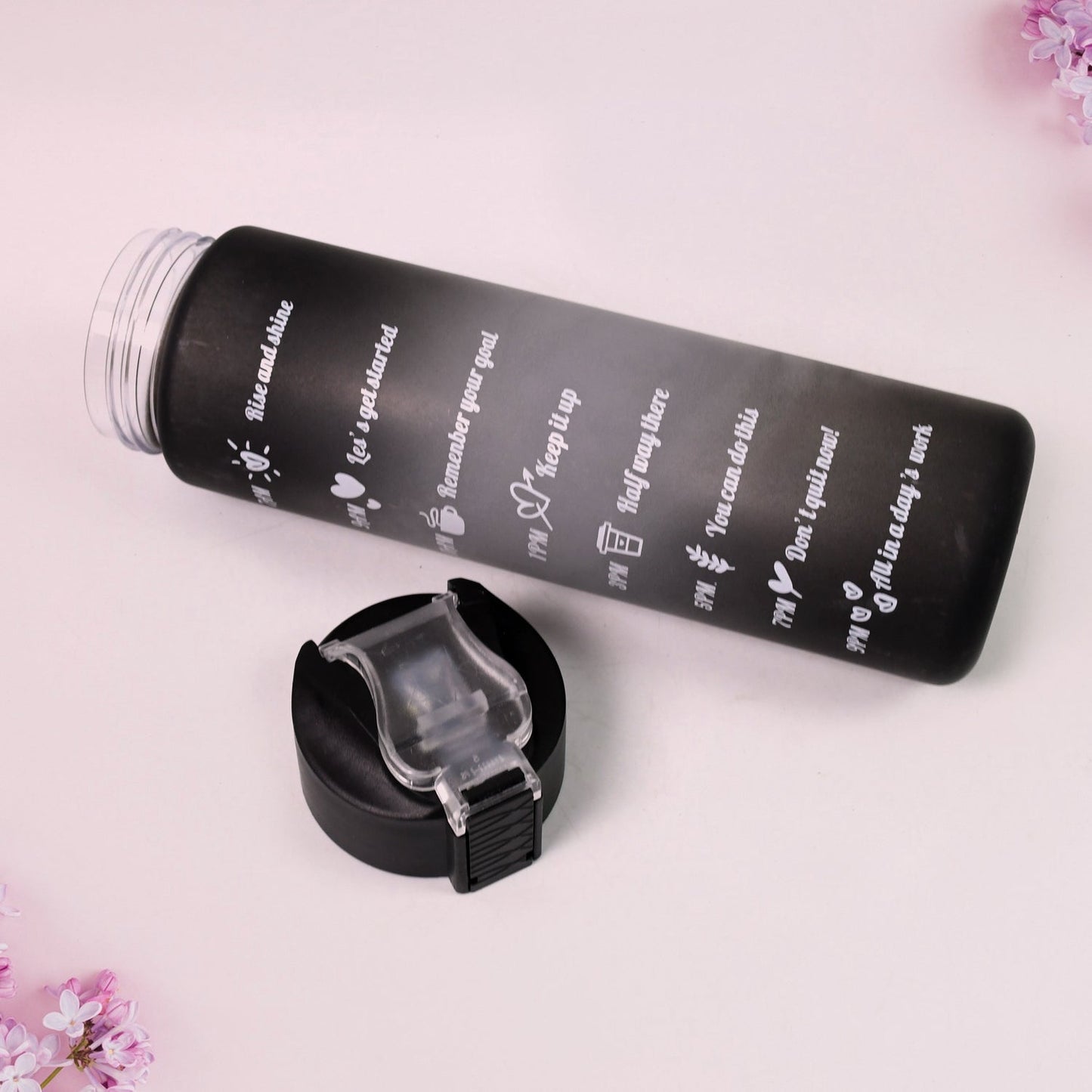Plastic Black Motivational Water Bottle with Straw (900 ML)
